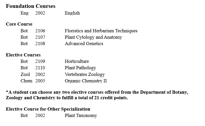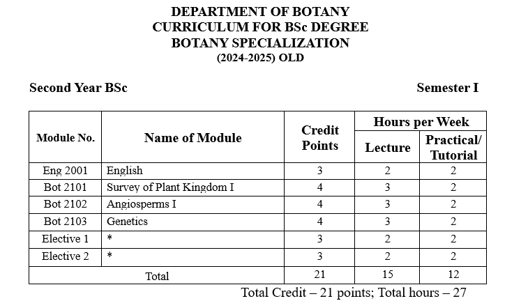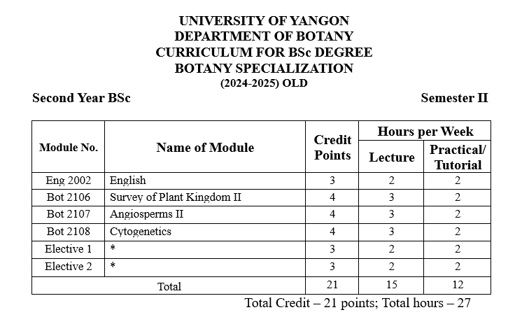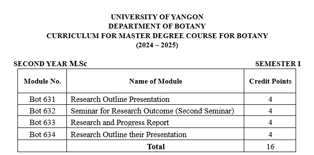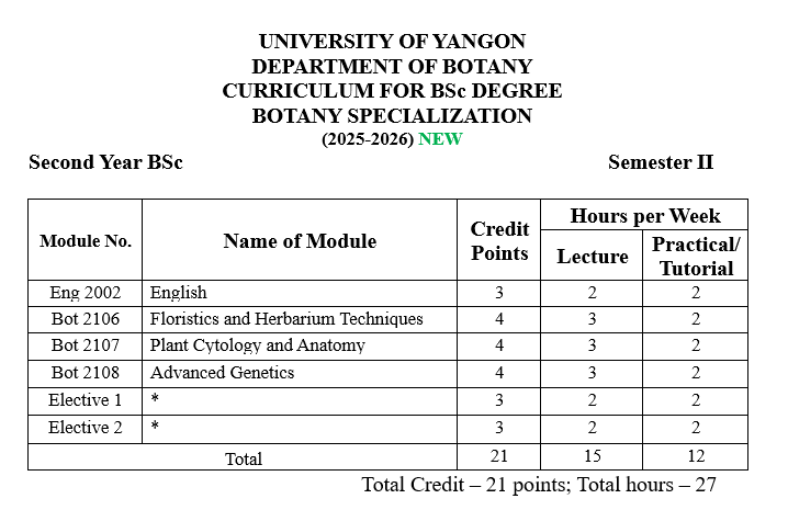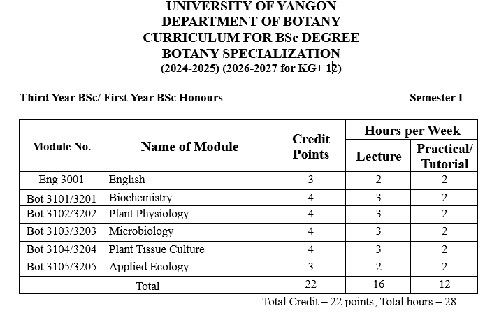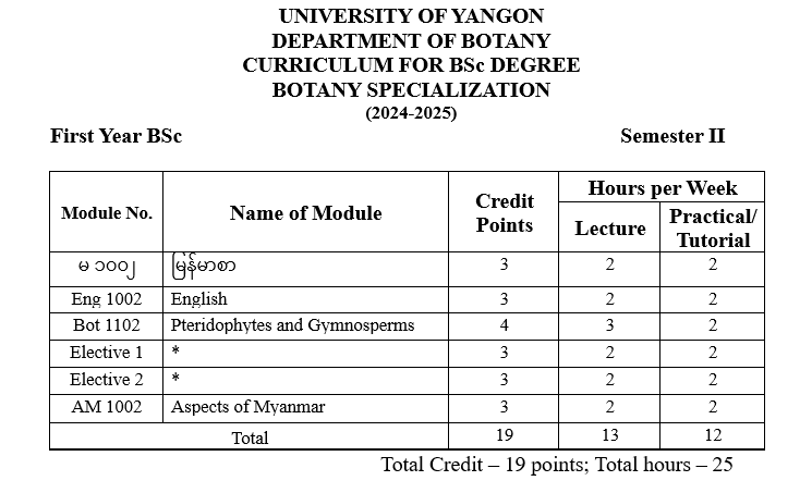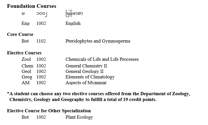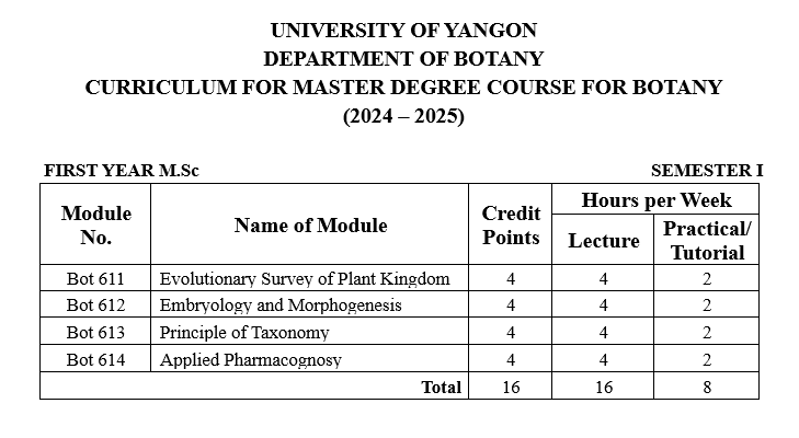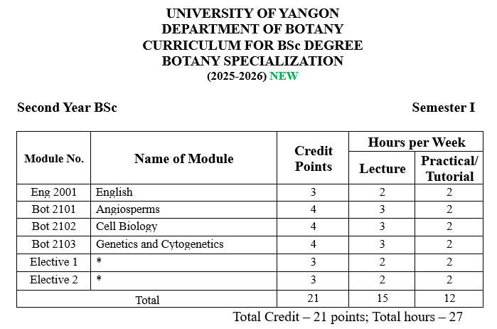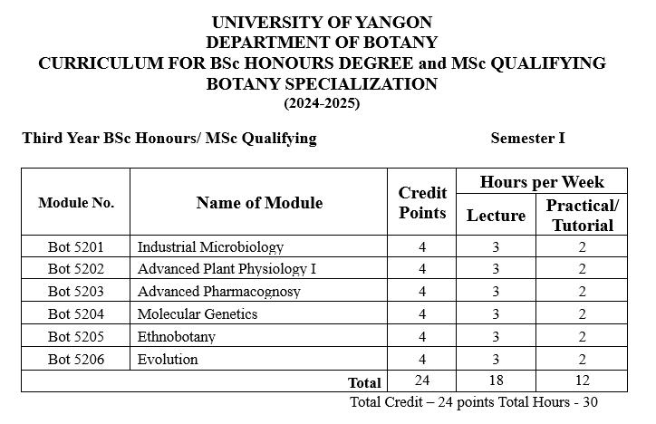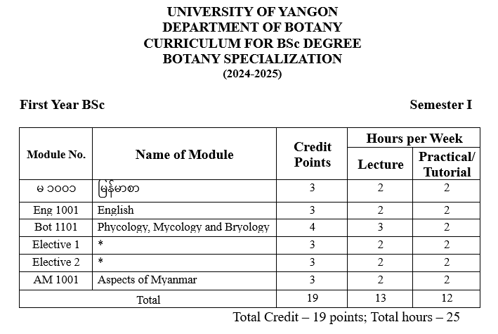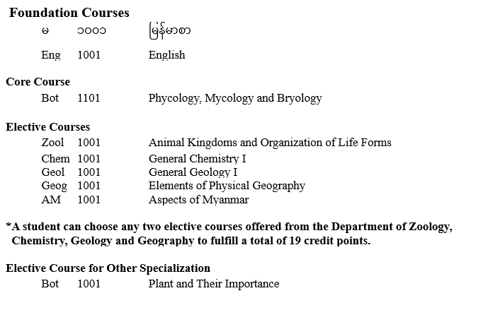 | ၁ | ပထမနှစ် | ရုက္ခဗေဒ |