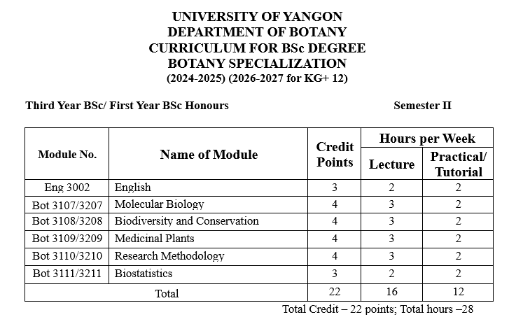 | ၃ | တတိယနှစ် | ရုက္ခဗေဒ |