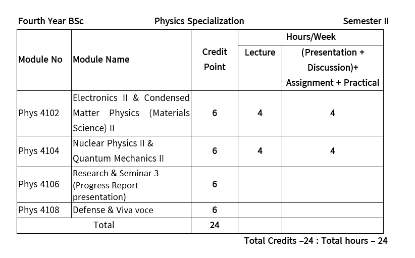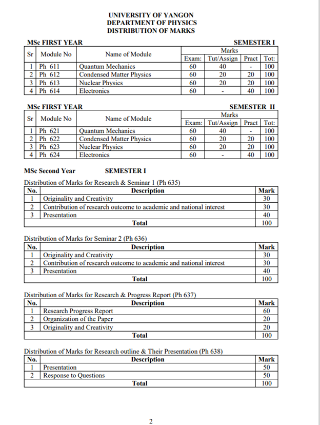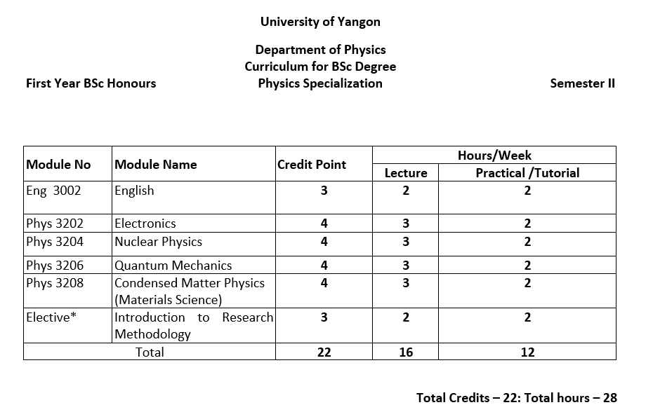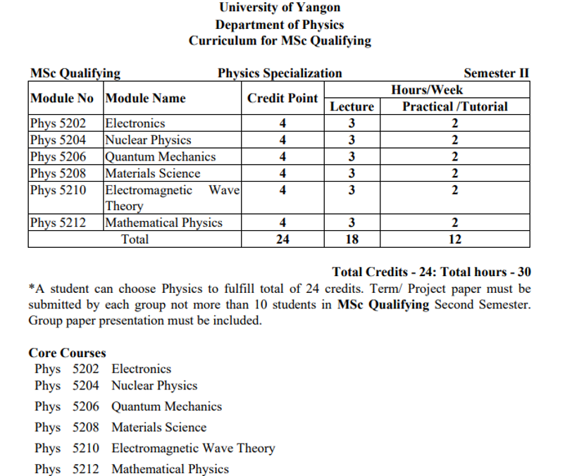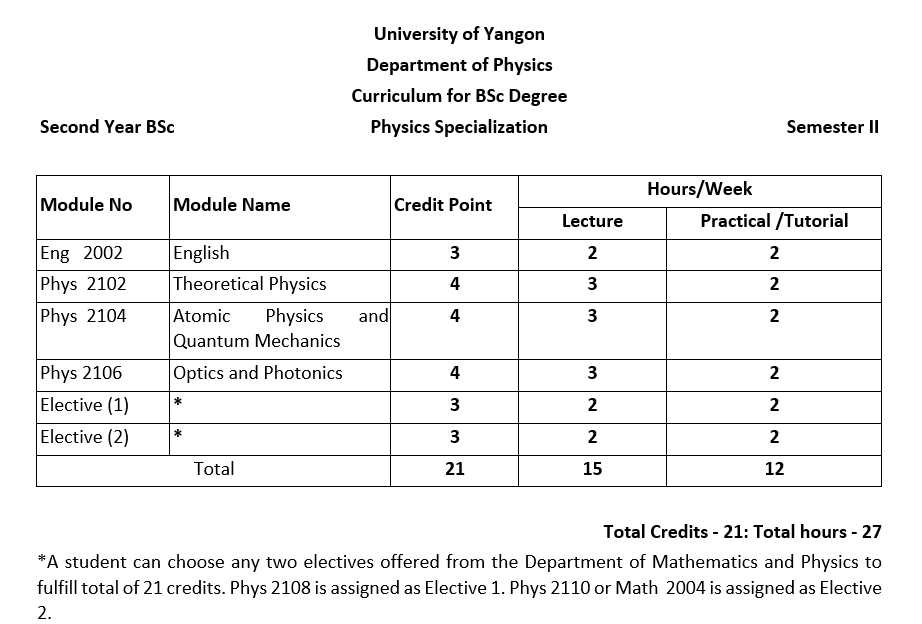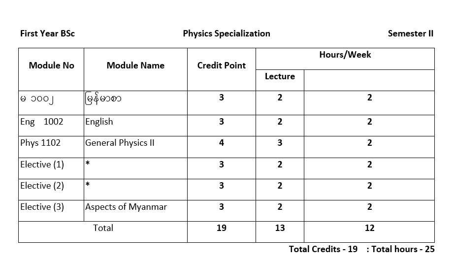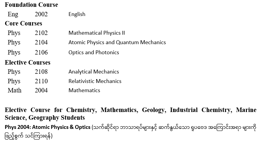 | ၂ | ဒုတိယနှစ် | ရူပဗေဒ |