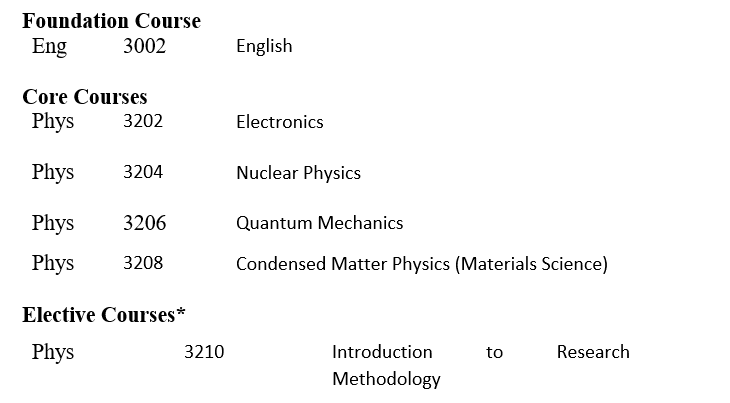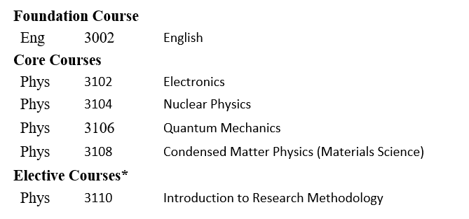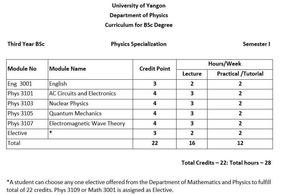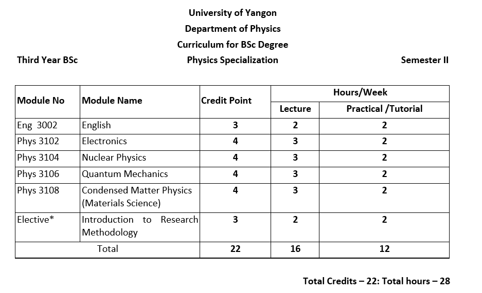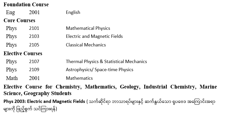 | ၃ | တတိယနှစ် | ရူပဗေဒ |